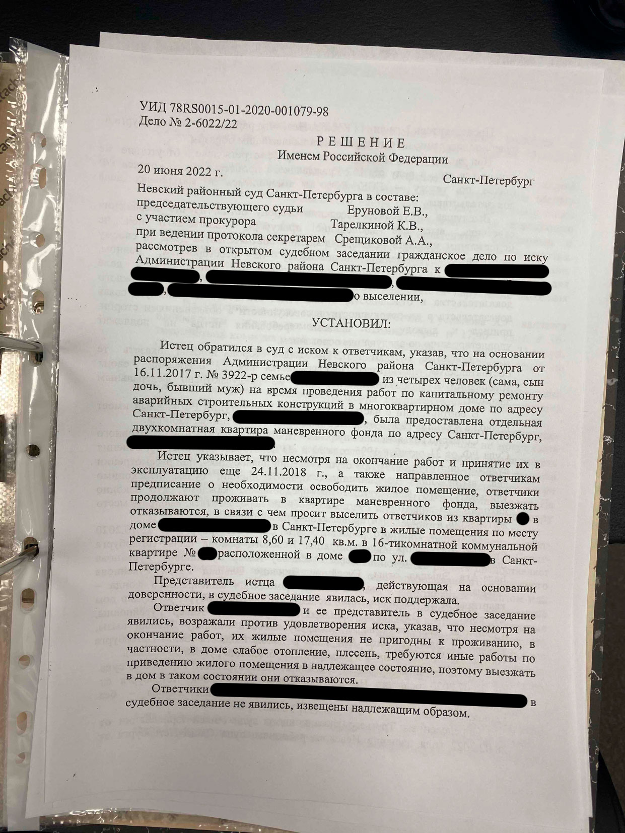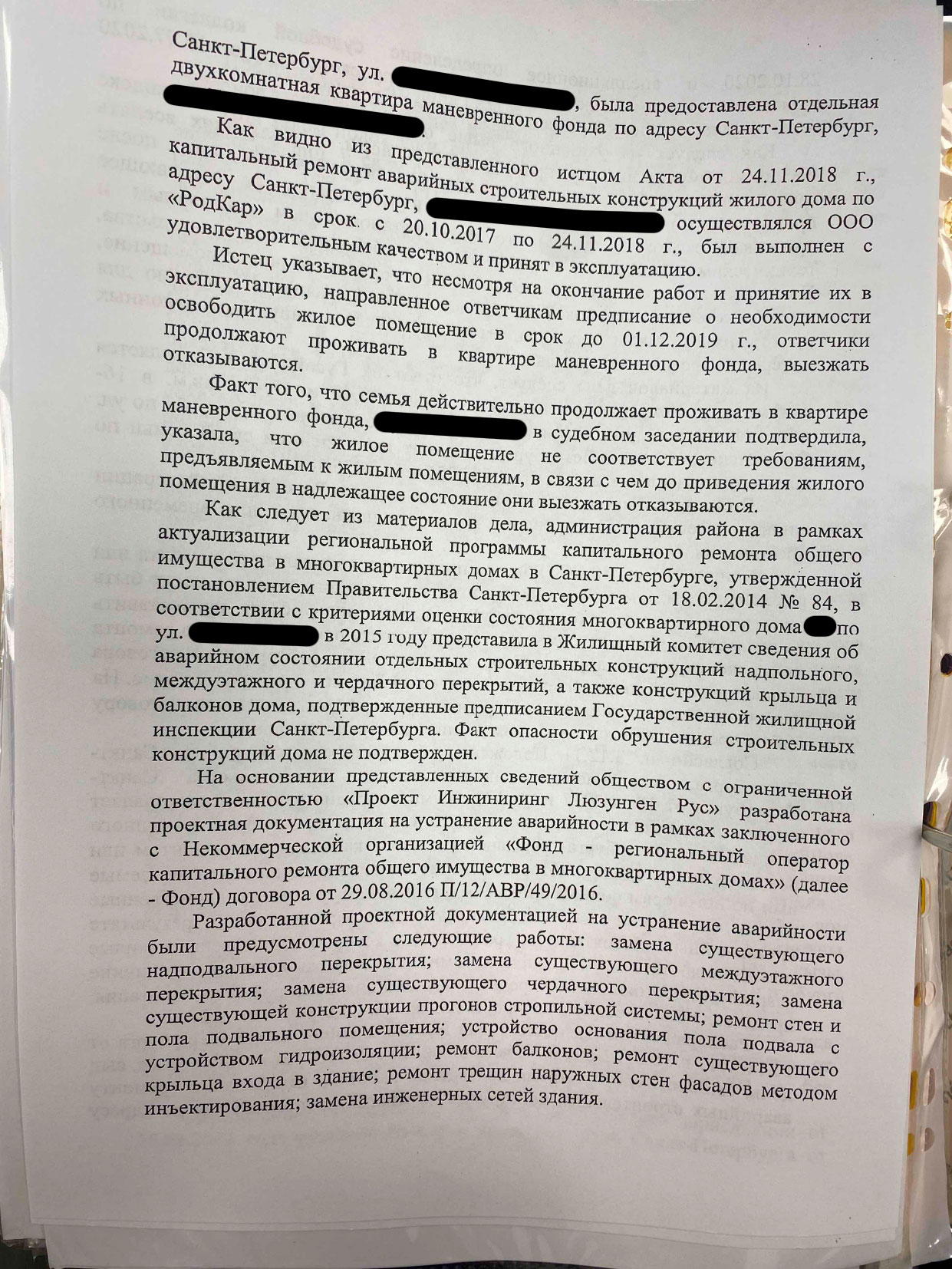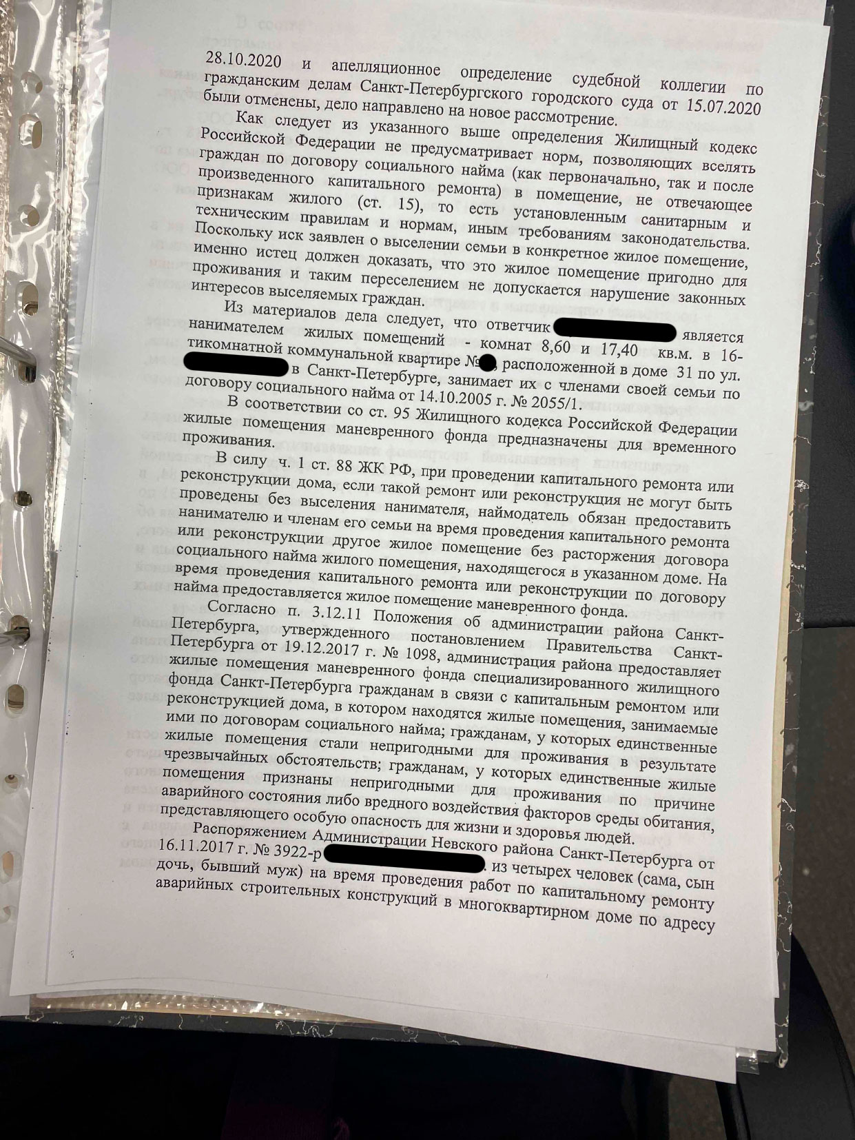 Администрация Невского района потребовала выселить целую семью из временного жилья на ул. Дудко и вернуть их в коммуналку после капремонта дома на Ольминского. По мнению чиновников, работы завершены, дом принят в эксплуатацию, значит — пора выезжать. Семья обратилась в ЮА «Петербургское Право» за защитой своих прав.