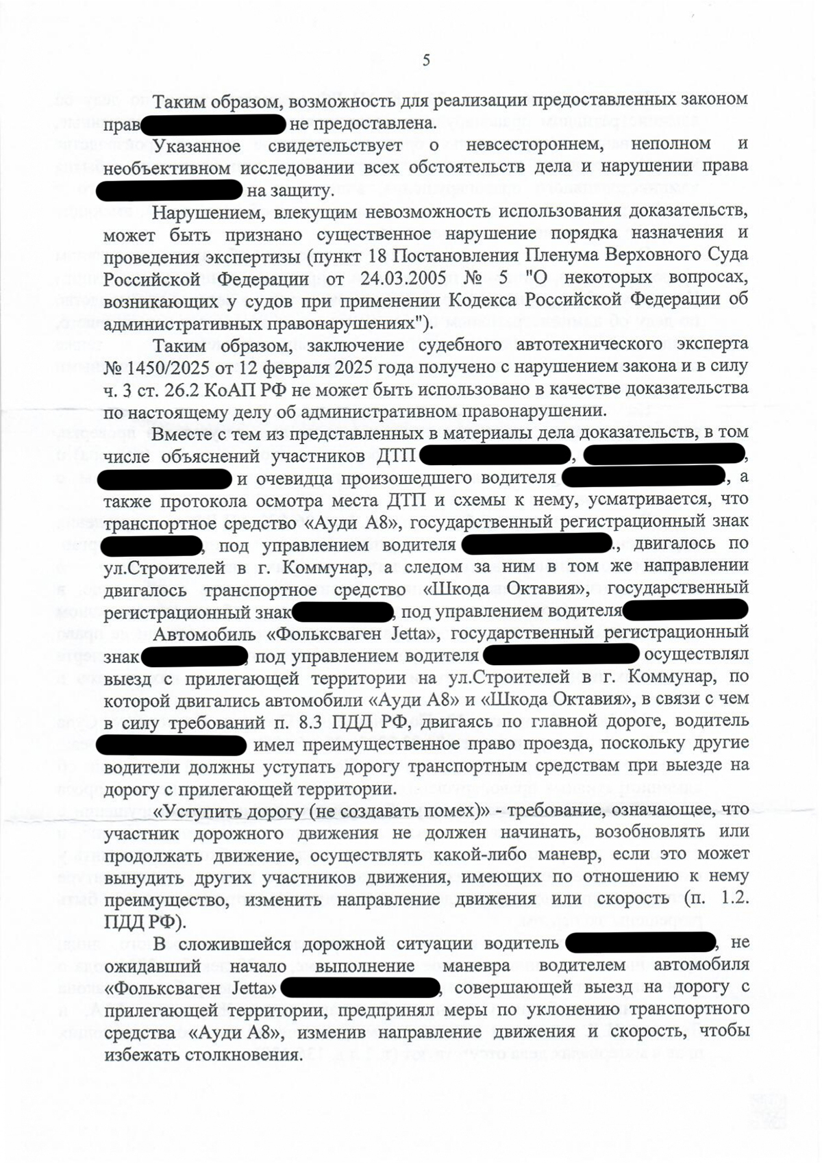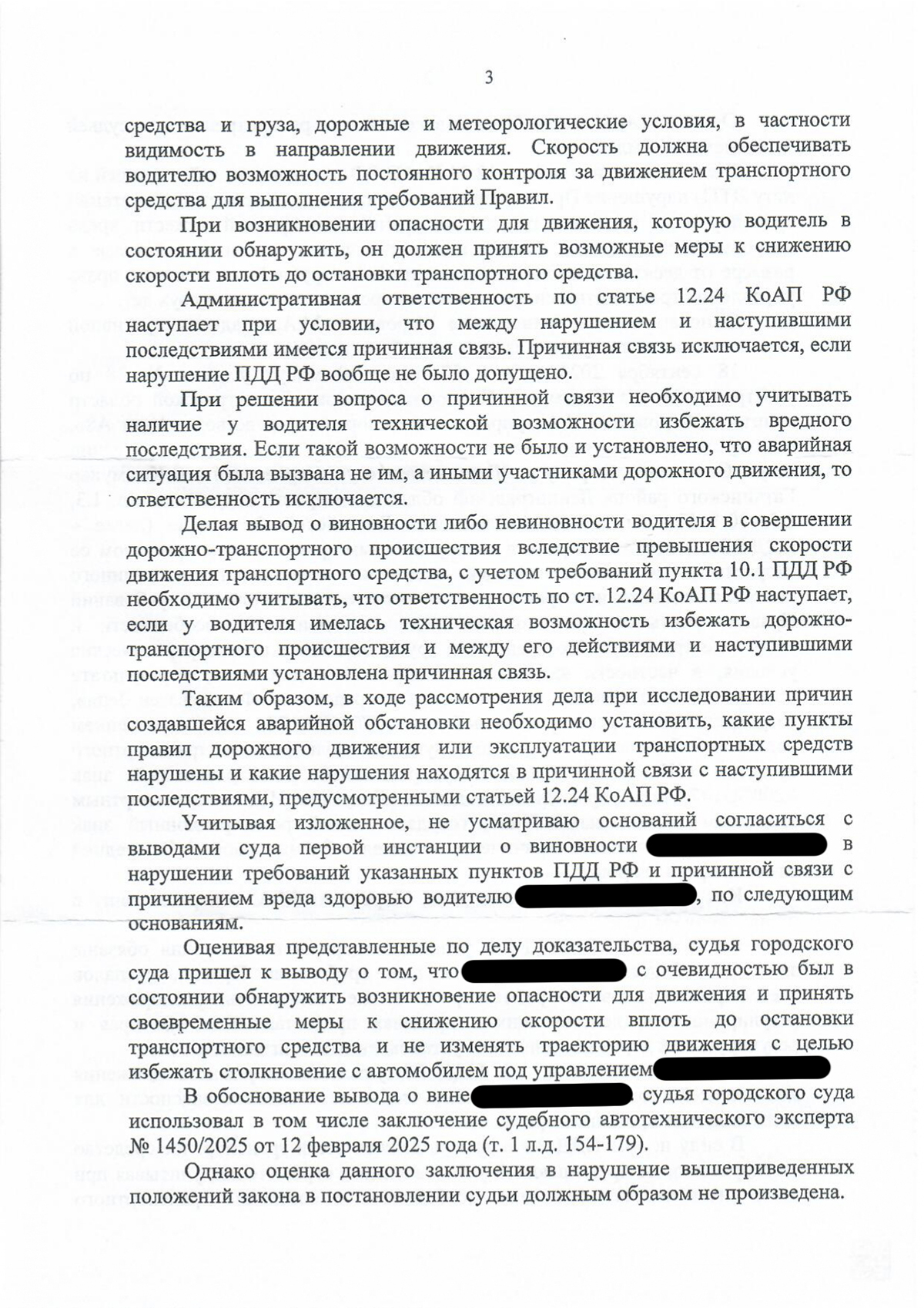 Из материалов дела также следует, что выезд на дорогу совершила другая участница, а наш доверитель предпринял манёвр уклонения; доказательств того, что он превышал скорость или имел техническую возможность избежать происшествия, суду первой инстанции предоставлено не было. Невсестороннее и неполное исследование обстоятельств оставило неустранимые сомнения в виновности.