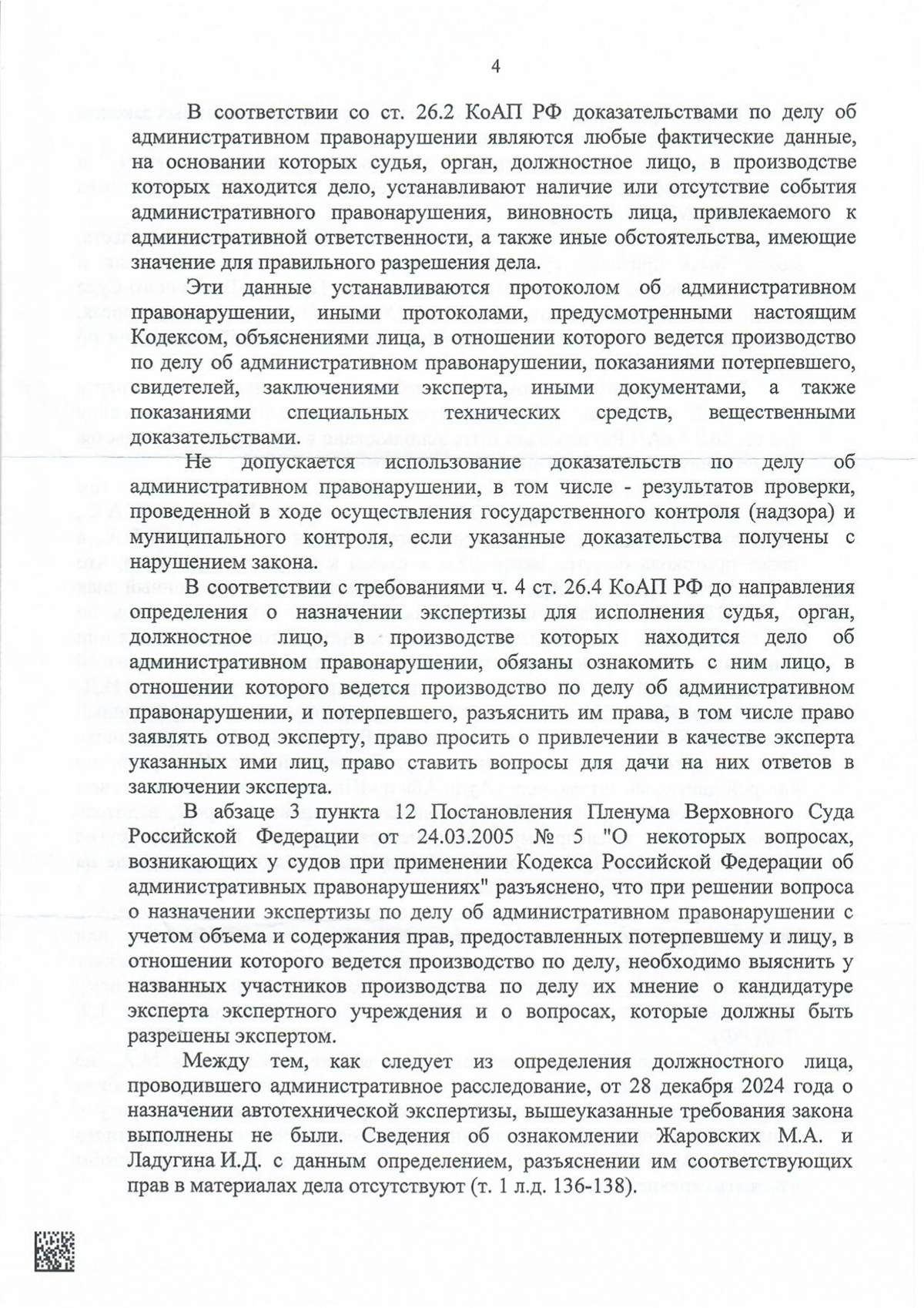 Ключевой довод апелляции — заключение автотехнической экспертизы, назначенной с нарушением процессуального порядка: сторонам не разъяснили права при назначении экспертизы и не предоставили возможность заявить отвод или предложить эксперта. По правилам оценки доказательств (ст. 26.2 КоАП РФ) такое заключение не могло служить допустимым доказательством.
