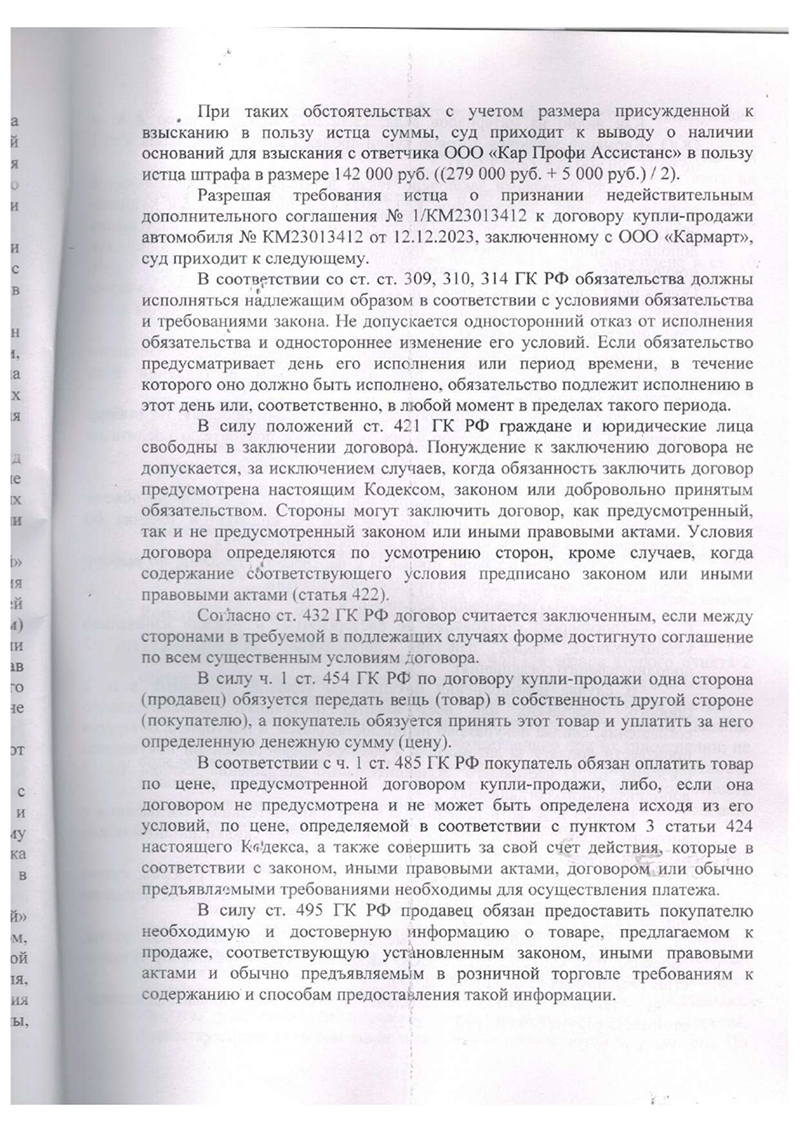 2. Мы доказали взаимосвязь всех договоров. Суд установил, что все три соглашения (кредитное, страховое и по гарантии) являются единой, навязанной потребителю схемой, прямо влияющей на конечную цену автомобиля.